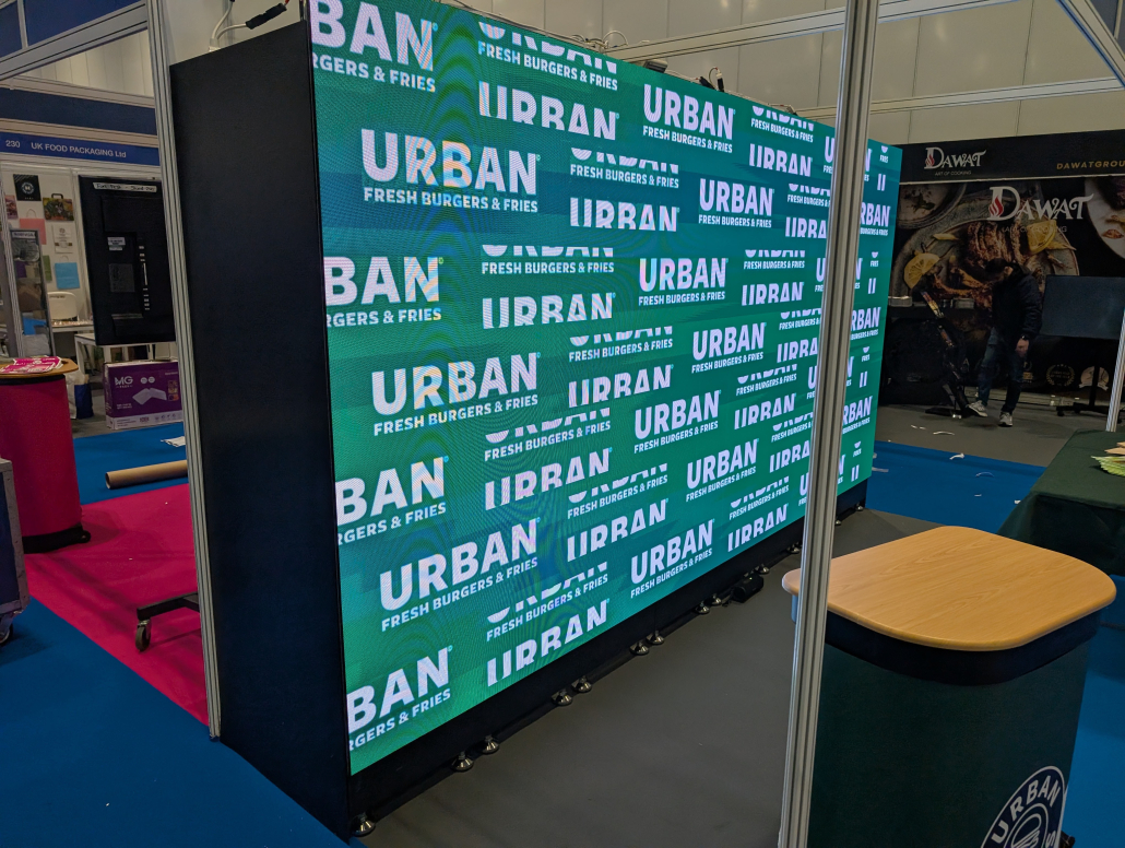 Consequently, the LED Video Wall delivered strong visual impact, helping to attract steady footfall and spark engagement with potential franchisees. Throughout the event, it ran seamlessly, delivering consistent performance and vibrant visuals that aligned perfectly with Urban Burgers’ modern, dynamic brand. The installation was completed on schedule and fully supported by our technical team to ensure a smooth experience from start to finish.