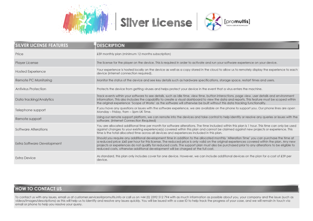 If you are interested in learning more about our bespoke software solutions, give us a call on 02392 512794 or email sales@promultis.info
